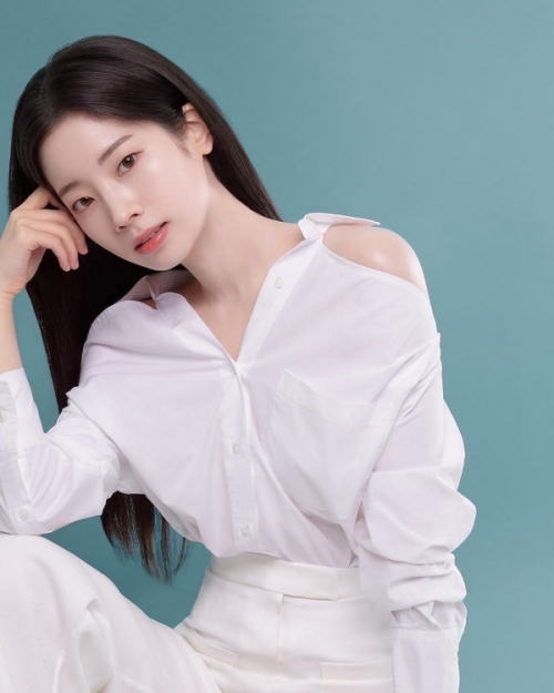 黒髪ストレートヘアとナチュラルなメイクでダヒョン本来の美しさを捉えたカットとなっている。