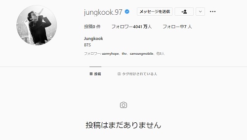 5月31日午前現在、JUNG KOOKのインスタグラムの投稿がすべて削除されている。