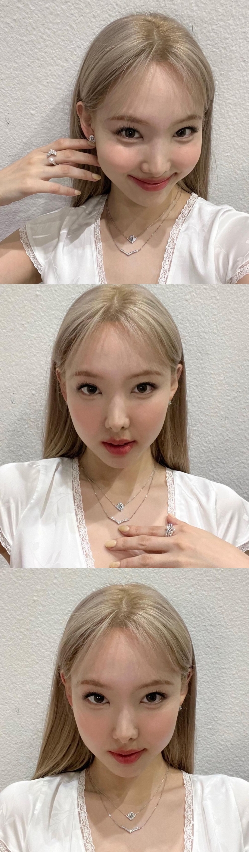 ナヨンは耳や首元で輝くジュエリーを見せつけながら上目遣いで笑みを浮かべた。
