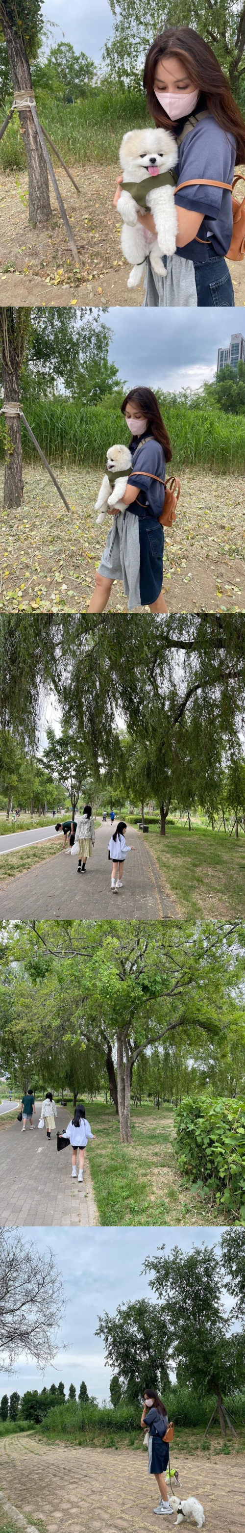 写真には、愛犬を抱き上げるコ・ソヨンの姿が写っている。