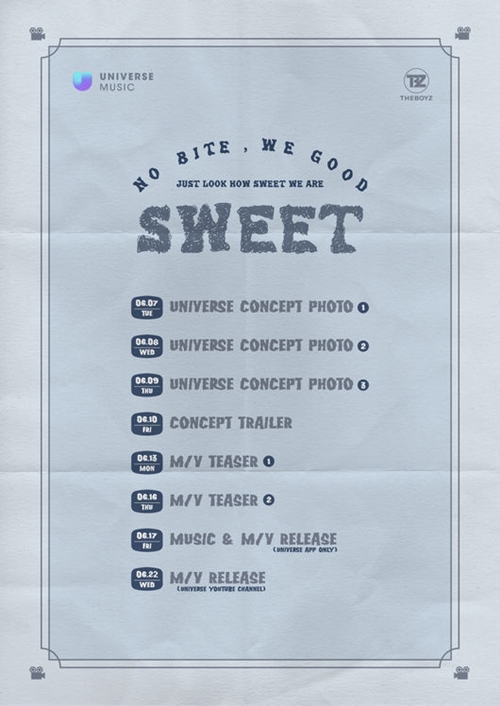 特に、スケジューラーイメージの中の「NO BITE、WE GOOD」や「JUST LOOK HOW SWEETWE ARE」のメッセージからも読み取れるように、THE BOYZが今回の新曲を通じて披露する今までと異なった魅力に期待が集まる。