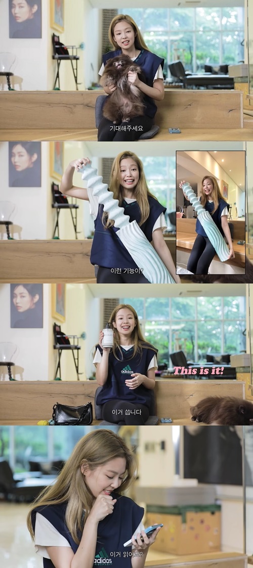 撮影場所を自宅と明かしたジェニーは、リラックスした姿で愛犬ククを抱いて動画に登場した。「なんで韓国語がこんなにできないのか」と自ら突っ込んだジェニーは、準備した小物などを手にしながら日常を共有した。