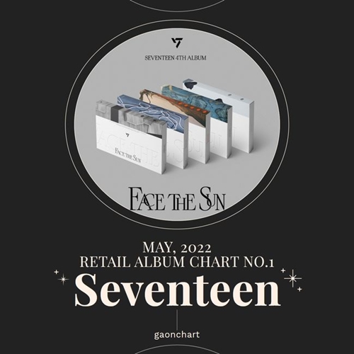 SEVENTEENの4枚目のフルアルバム『Face the Sun』がGAONチャートの5月の月間リテールアルバムチャートで1位に輝いた。