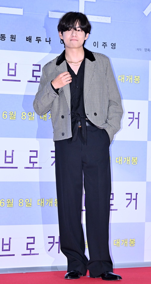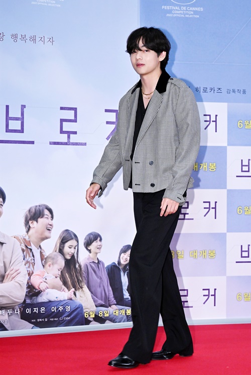 Vは6月3日、ソウル龍山(ヨンサン)CGVで行われた映画『ベイビー・ブローカー』のVIP試写会に姿を現した。