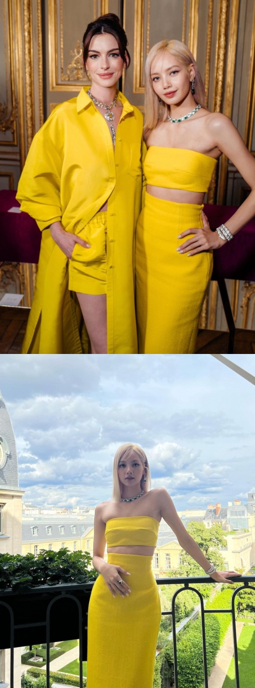 またリサは、映画『プラダを着た悪魔』などで知られるハリウッド女優アン・ハサウェイとのツーショット写真も残した。同日のイベントのブランドコンセプトカラーはイエローで、アン・ハサウェイも同じ色の衣装を着用している。