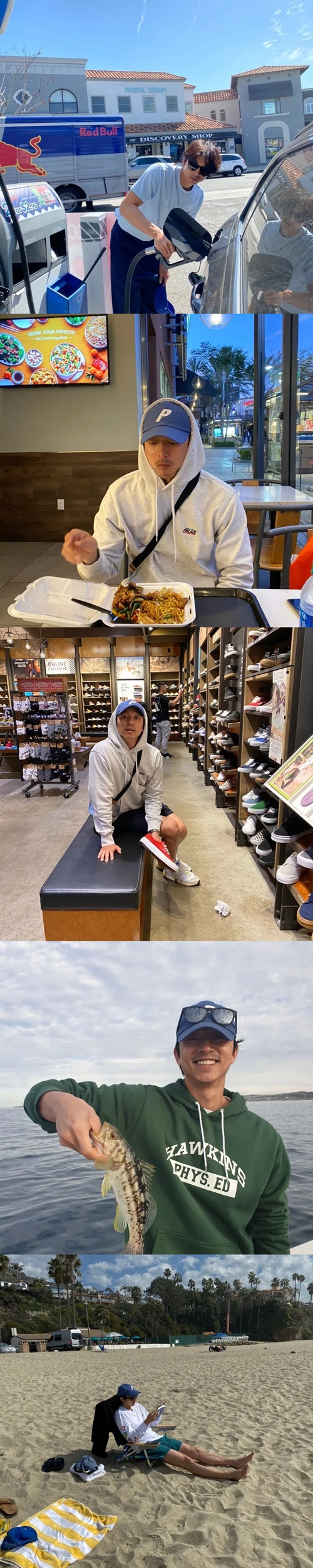 コン・ユは海外旅行中、ガソリンスタンドでガソリンを入れている姿や、靴を選んでいる姿、海で釣りをしている姿、浜辺で読書している姿など、オフの過ごし方を公開し、思い出に浸っている。Tシャツ、フーディー、キャップなどのカジュアルファッションや、しっかりしたフィジカルが印象的だ。