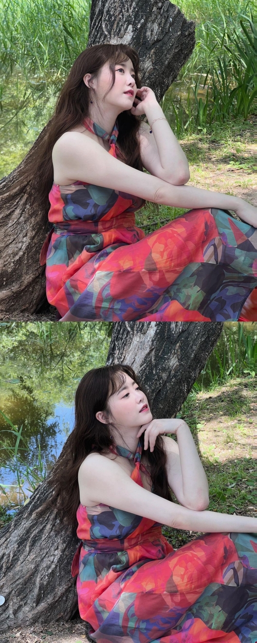 写真には、湖畔で優雅なビジュアルを見せるク・ヘソンが写っている。これは、ファッション誌『MAG AND JINA』のメイキングカットだ。