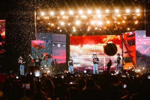 続いて『Just Love』『Burning Up(feat.R3HAB)』で会場を盛り上げたMONSTA Xは、『One day』『Play It Cool』『You problem』を英語で歌い、現地ファンに寄り添う一面も見せている。