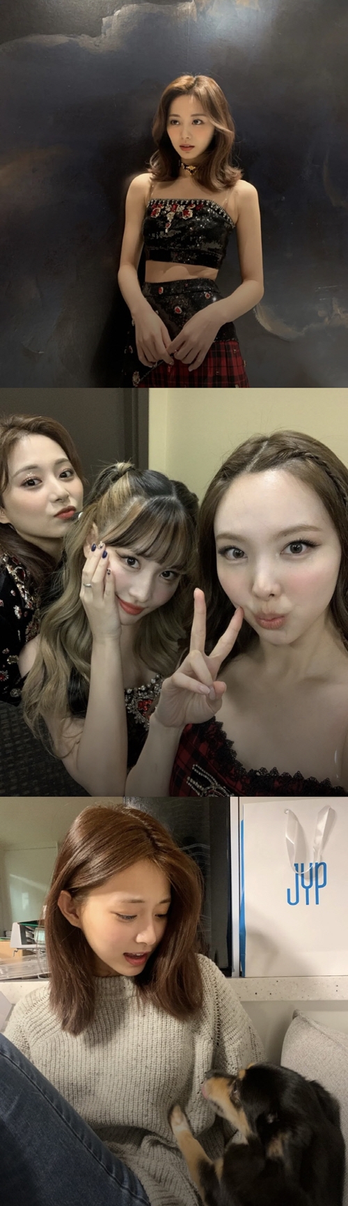 公開された写真には、舞台衣装姿のツウィが収められている。人形のようなツウィの愛らしい美貌と、“黄金比率”のボディラインが目を引く。また別の写真には、ナヨン、モモとともに可愛い表情を浮かべるツウィが写っている。