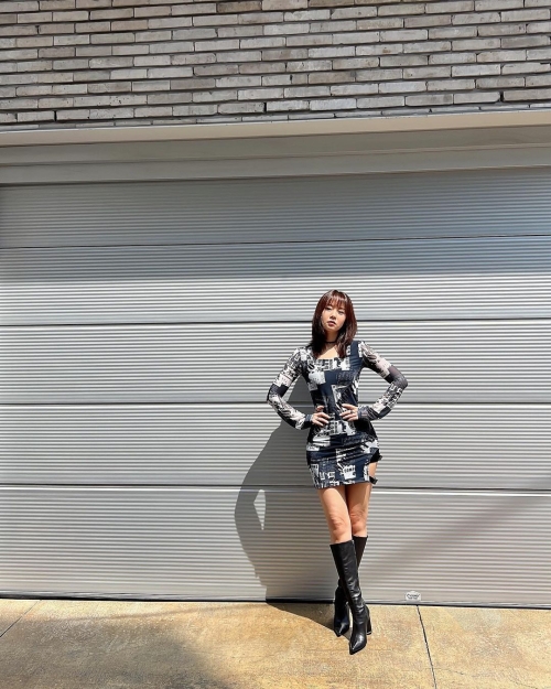 ハン・スンヨンは黒のロングブーツにタイトなワンピース姿の美脚で魅了した。