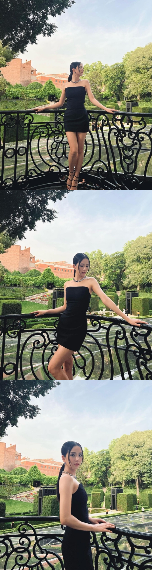 写真には、異国情緒あふれるバルコニーで記念撮影をするジスが写っている。ジスは漆黒のチューブトップドレスに身を包み、圧倒的なオーラを誇った。