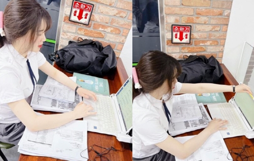 6月20日、ク・ヘソンは自身のインスタグラムに「季節学期の授業中です。学生服姿で図書館でこっそりこっそり」という文章と数枚の写真を投稿した。
