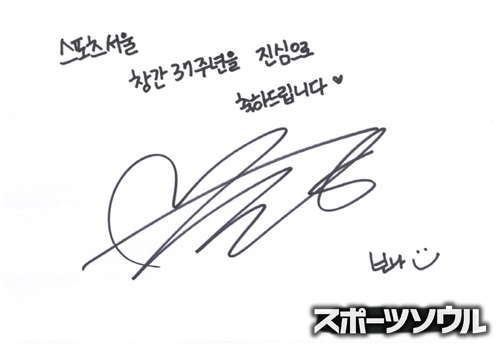 『スポーツソウル』の創刊37周年を心よりお祝い申し上げます。これからも今のように良い知らせをたくさん聞かせてください。私もこれからもずっと応援します。