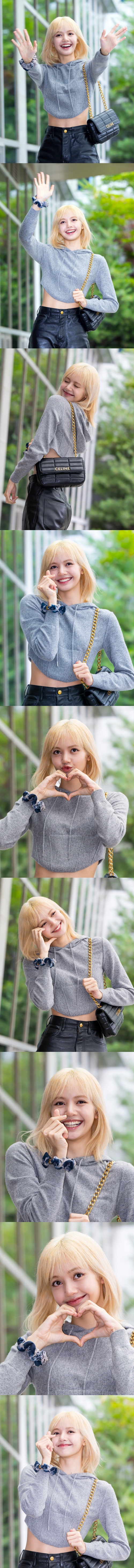 BLACKPINKリサ、キュートなポーズを惜しげもなく披露!“くびれた美ウエスト”がチラリ【空港ファッション】