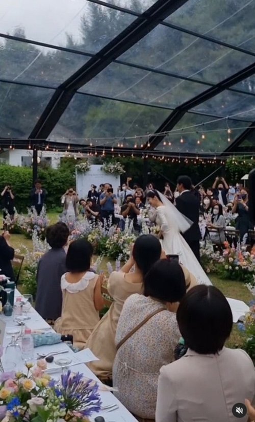 続いて「善良に、熱心に生きてきたあの人間に、このような日を与えてくれて本当にありがとうございます。たくさん祝ってください。放っておけば自分で連れて行って豊かに暮らします。結婚式に来て頂いた方々、誠にありがとうございます。#祝結婚 #私の妹 #ついに結婚# 今日だけはきれいだった」と付け加え、新郎新婦が挨拶している姿も公開した。