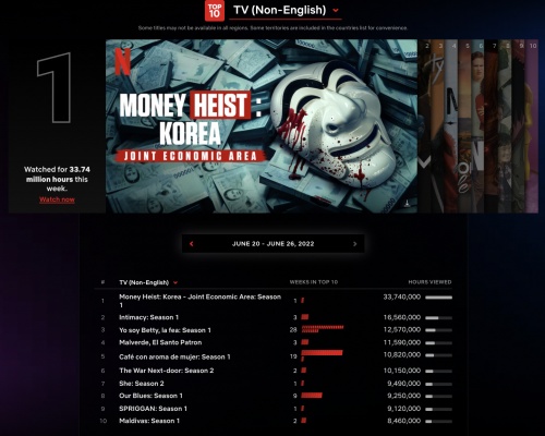 (画像=Netflix TOP 10)『ペーパー・ハウス・コリア』がTV部門(非英語)で世界1位に