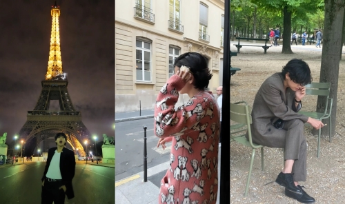 写真には、エッフェル塔の前で記念撮影をしたり、パリの公園で佇んだり、セリーヌ(CELINE)の新作に袖を通したりする姿などが写っている。