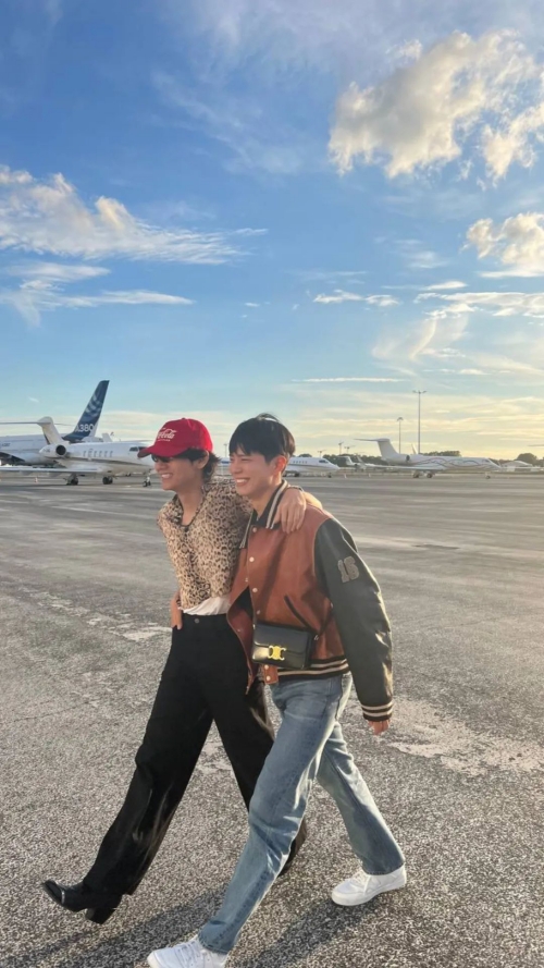 その中で一際目を引いたのが、パク・ボゴムとのツーショットだ。飛行機を降り立った2人は満面の笑みを浮かべながら肩を組んでおり、仲の良さをうかがわせた。