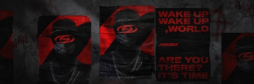 公開されたポスターは、地下に無作為に貼られた印刷物が写され、黒い帽子とマスクで顔を隠した謎の人物が目を引く。それだけでなく、彼の顔の上にはATEEZの新しいロゴが刻まれており、その横に書かれた「WAKE UP、WORLD/ARE YOU THERE?/IT'S TIME」という文字にどんなメッセージが込められているのか好奇心を刺激する。