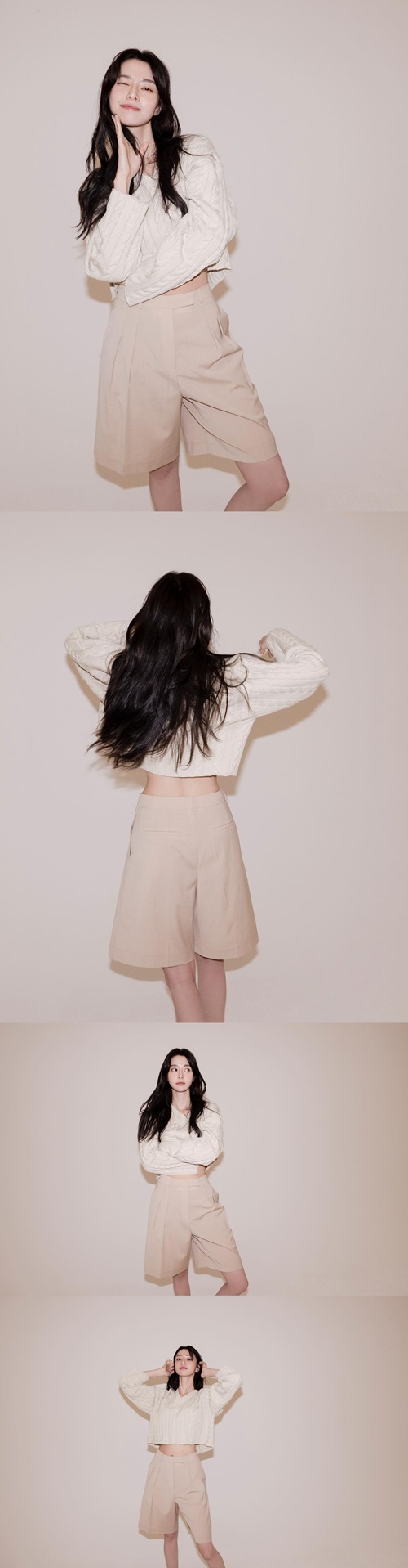 写真を見ると、アイボリーのニットにベージュのハーフパンツを合わせたコーディネートのクォン・ナラが写っている。