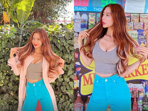 特に目を引くのは、がっつり開いたトップスから見える胸部だ。ボリューム感とクロップド丈からのぞく腹筋、見事なくびれで、メリハリのある自慢の体型を誇示した。