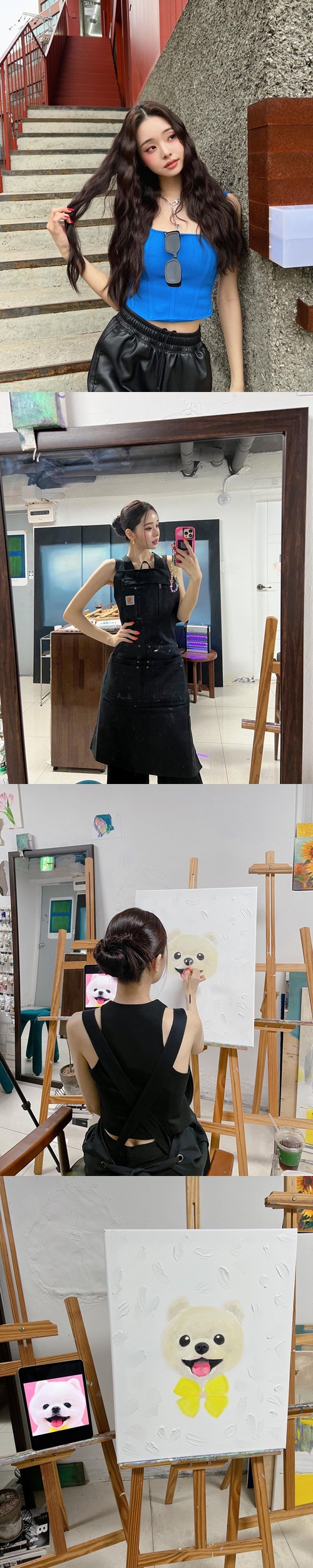 また、別の写真ではエプロン姿で鏡の前に立っているソン・ジア。自身の愛犬の絵を描く後ろ姿からも、並々ならぬオーラが漂っている。