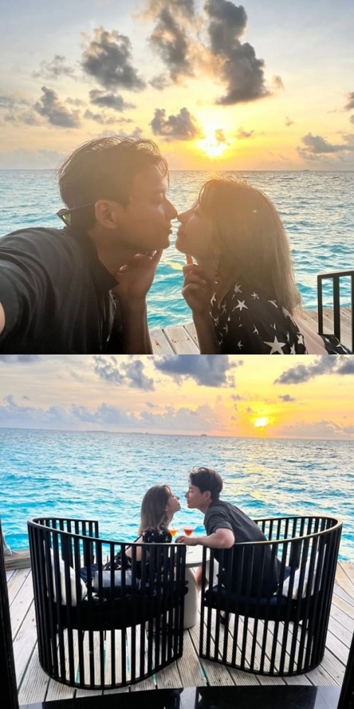 公開された写真でイ・ジフンとアヤネさんは、一緒にモルディブの夕焼けを眺めている。美しい海辺で2人は、キスをする直前のポーズを取っている。背景の美しさはもちろん、美男美女カップルであるだけに、映画のひとコマのような写真だ。