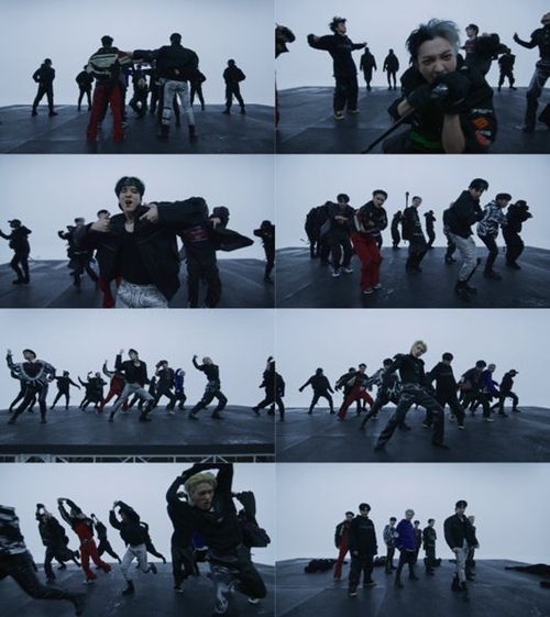 「We are the Guerrillas」という歌詞に合わせ、爆発しそうなエネルギーが溢れ出る激しい振り付けを見せたATEEZ。0.1秒ごとに変わる表情演技で、1分31秒の間、目を離せなくさせる。