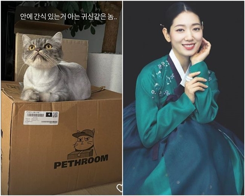 公開された写真には、パク・シネが飼っている愛猫が、猫のおやつが入った箱の上に座って虚空を見つめる姿が写っている。