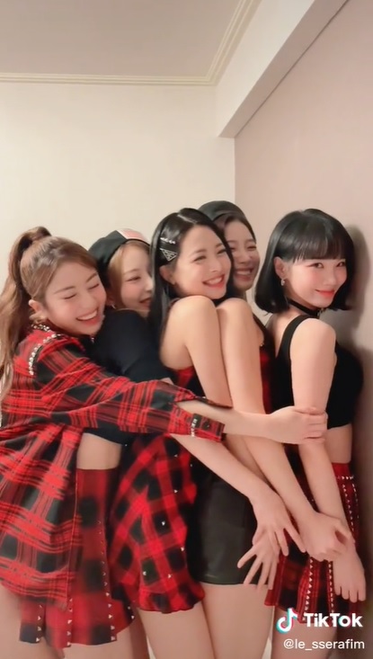 LE SSERAFIMは7月21日、公式TikTokアカウントに動画を公開した。その動画は、5人が仲良く一直線に並んで音楽に合わせてダンスしながら、最後に抱き合うといった内容だ。