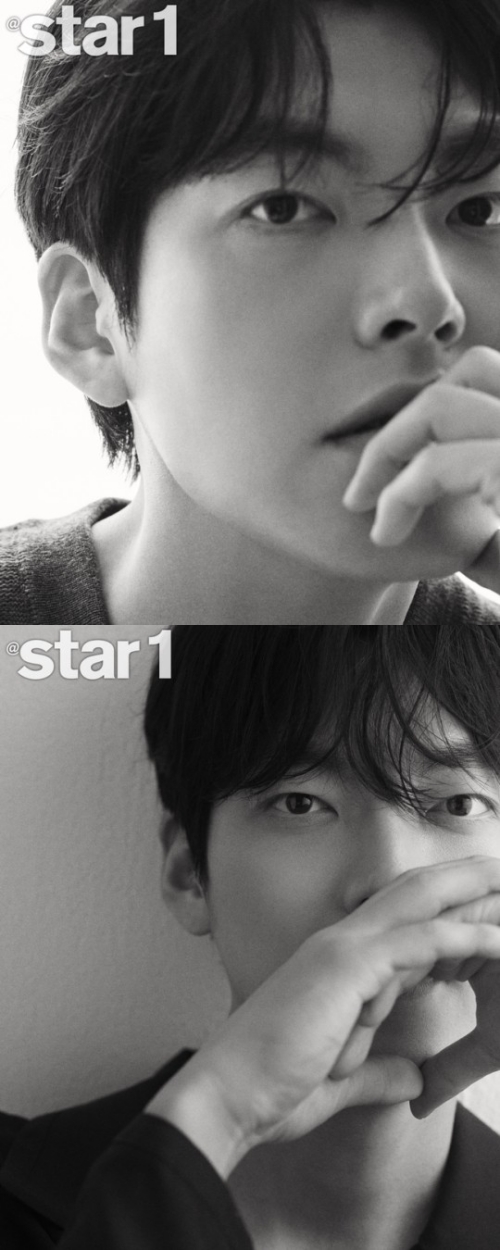 写真には、ナチュラルな雰囲気の中で輝くビジュアルを誇るキム・ウビンの姿が写っている。モデル出身なだけあって、強い目力が印象的だ。
