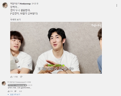ショートトラックスピードスケート選手のクァク・ユンギは7月25日、自身のYouTubeチャンネル「ぎゅっと握ってユンギ-Kwakyoongy」(原題)のコミュニティに「チャンヒョク...ヨナ姉さんが結婚するって…(キム・ヨナ、10月の花嫁になる)チャンヒョクとキム・ヨナはどんな関係…?」という書き込みと共に一つの映像を添付した。