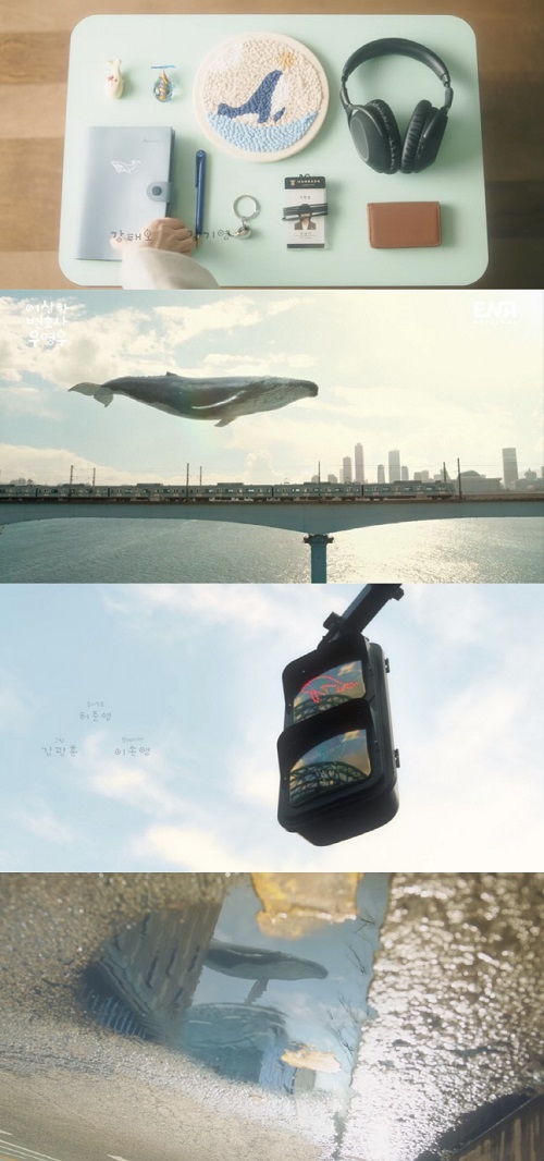 視聴者の間では、クジラすなわちウ・ヨンウという解釈が支配的だ。ウ・ヨンウの部屋にはクジラの小物がいっぱいで、彼女が素晴らしいアイデアをひらめくときには、大きなクジラが広大な海を泳いで跳ね上がるシーンが映される。出勤中、地下鉄でヘッドホンをつけてウ・ヨンウが聴いているのも、クジラの鳴き声だ。