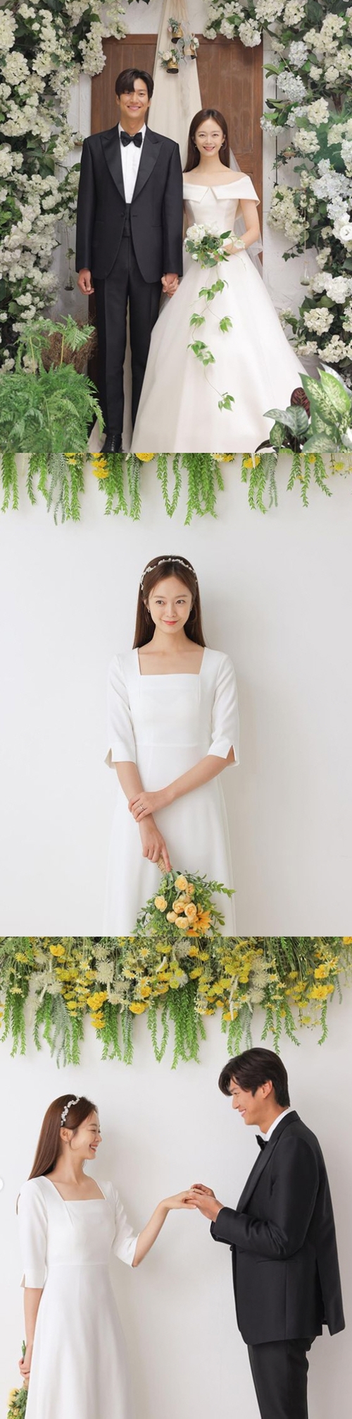 公開された写真には、ウェディングドレスを着たチョン・ソミンと、身長187cmのスタイル抜群なタキシード姿の俳優ナ・イヌが並んで立っている。白いブーケを持ち、ベールを被ったチョン・ソミンは、清純な魅力を最大限に発揮している。