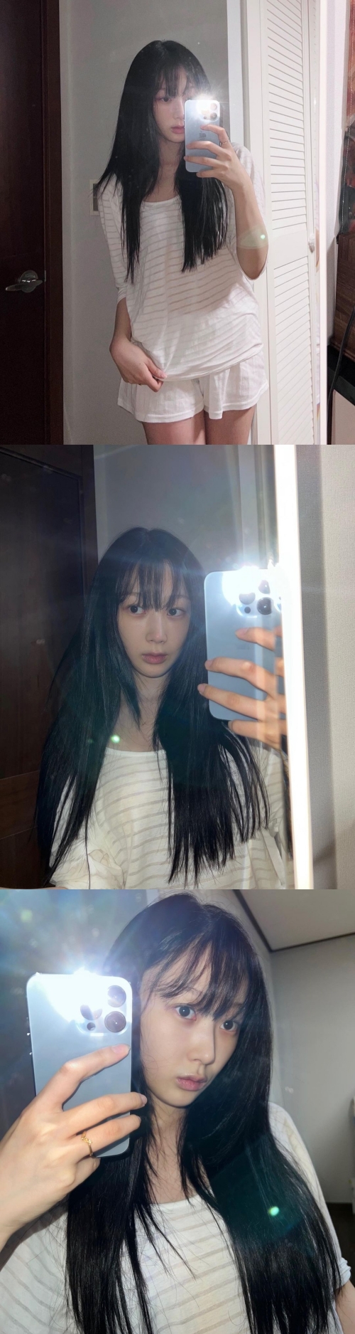 写真には、鏡の前で自撮りをするGISELLEの姿が写っている。