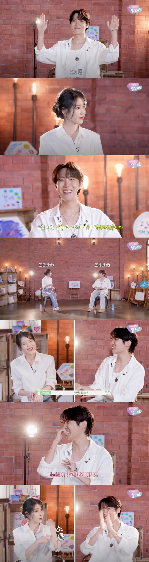 IUの公式YouTubeチャンネルのコンテンツ「IU’s Palette」14部で登場したJ-HOPE。IUも「私もこの方の出演ニュースを聞いて本当に“ホープ”と驚きました」と話した。