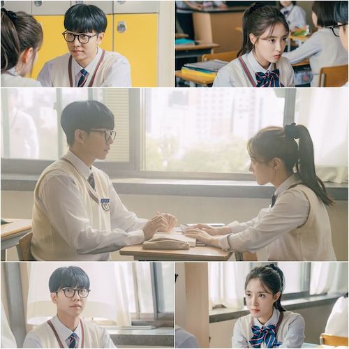 いつも学年トップだったキム・ユリが、転校してきてすぐに学年トップを奪ったキム・ジョンホに声をかけた状況。初めてトップを逃してしまい、キレ気味だったユリだが、いざジョンホの前に座ると『長ぐつをはいたネコ』のような“エモい表情”に。それに対してジョンホも“執事の笑顔”を見せ、2人は初夏のときめきを盛り込んだ制服ツーショットを完成した。