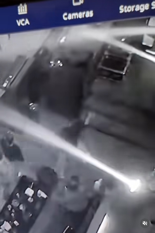 併せて公開された監視カメラの映像には、一人の男性が握っていたグラスを投げている姿が確認できる。