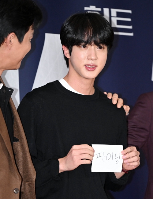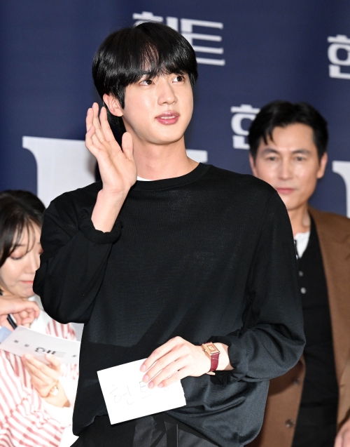 JINは8月2日、ソウル江南(カンナム)区MEGABOXで行われた映画『HUNT』(原題)のVIP試写会に姿を現した。