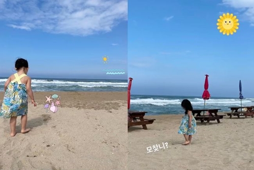 公開された写真には、裸足で砂浜をよちよちと歩くチェ・ジウの娘が写っている。特に娘の顔は公開されていないが、後ろ姿の雰囲気はチェ・ジウにそっくりだ。