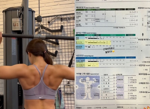 公開された写真には、同日に測定したInBody(インボディ、人体を構成する成分の過不足を評価する検査)検査の結果が写っている。身長169cm、体重56.9kgのイ・シヨンは、体脂肪率が8.9%だったようだ。