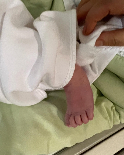公開された写真には、同日生まれた息子の“かわいいあんよ”が写っている。可愛らしい小さな足が見る者をキュンとさせる。