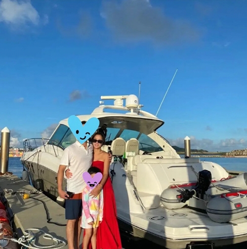 また別の写真にはヨットの前に立って夫の胸に抱かれたファン・ジョンウムが写っている。夫婦の前には子供もおり、家族の中の良さが存分に感じられる一枚だ。
