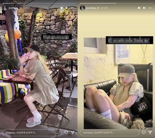 公開された写真のジミンは、ソウル狎鴎亭(アックジョン)にあるカジュアルイタリアンダイニングを訪問している。野外テーブルに座ったジミンは爽やかな表情とポーズを取っている。明るい金髪とほっそりとした体つき、腕のタトゥーが目を引く。