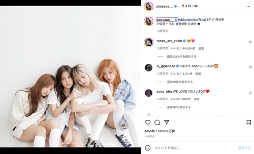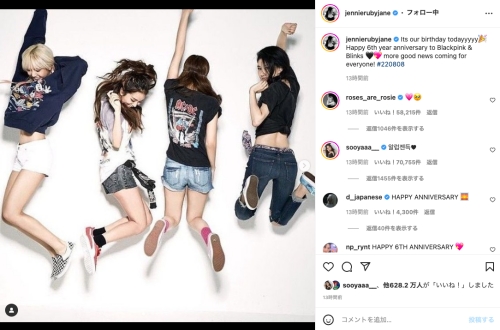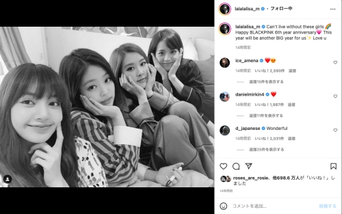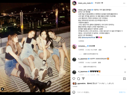 さらに、ジェニー、ジス、ロゼも6周年をお祝いする投稿をしながらメンバーへの愛を綴り、ファンを喜ばせた。