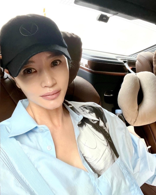 公開された写真には、車内で自撮りをするキム・ヘスの姿が写っている。