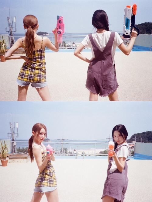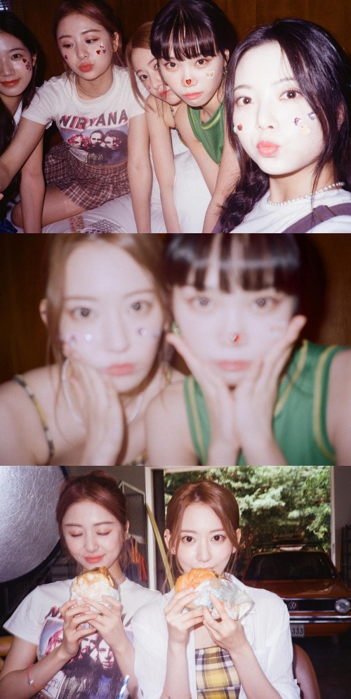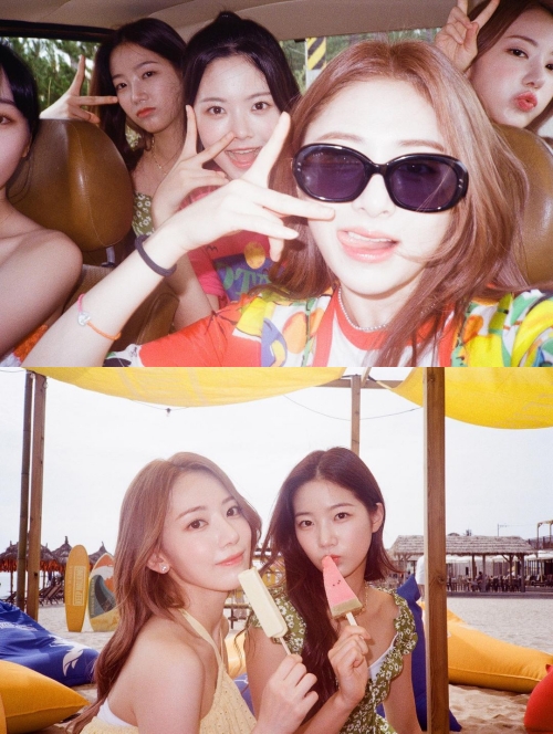 写真には、チェウォン、ホ・ユンジン、カズハ、ホン・ウンチェ、宮脇咲良の5人が夏を満喫する姿が写っている。