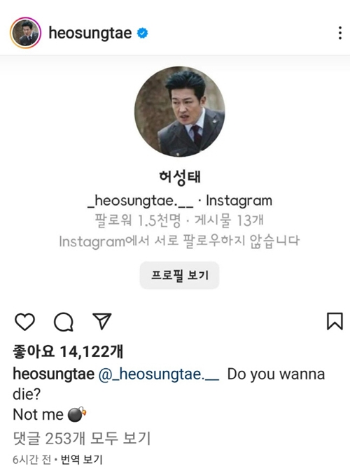 8月15日、ホ・ソンテはインスタグラムを更新。自身の偽アカウントのプロフィール画面をキャプチャした画像を公開した。