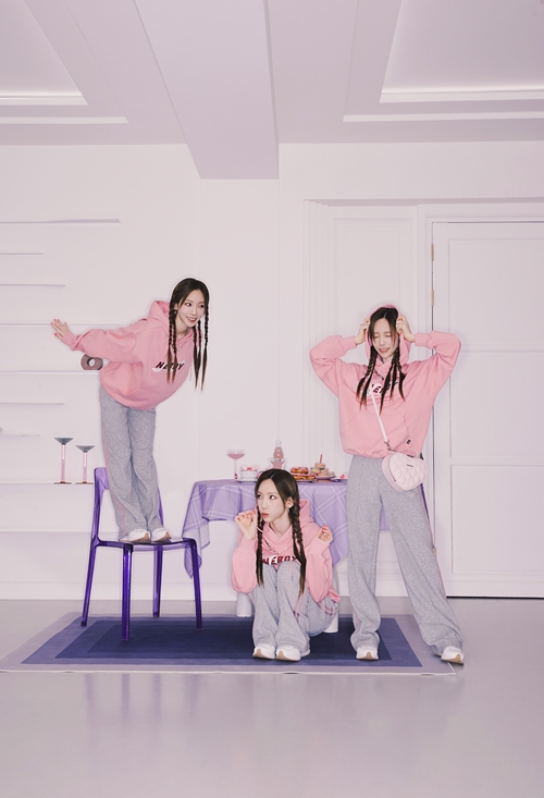 テヨンはNERDYを代表するアイテムである“トラックセット”に女性用のインナーTシャツを合わせ、新しい雰囲気のトラックスーツルックを演出。ジャガード編みのロゴが目立つ“パレットトラックセット”やTシャツを合わせ、ラフな着こなしでトレンディながらも洗練されたオーラを醸し出した。