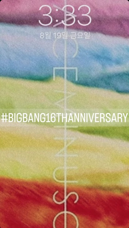 ストーリー機能を通じて「#BIGBANG16THANNIVERSARY」と綴るとともに、1枚の画像を投稿した。
